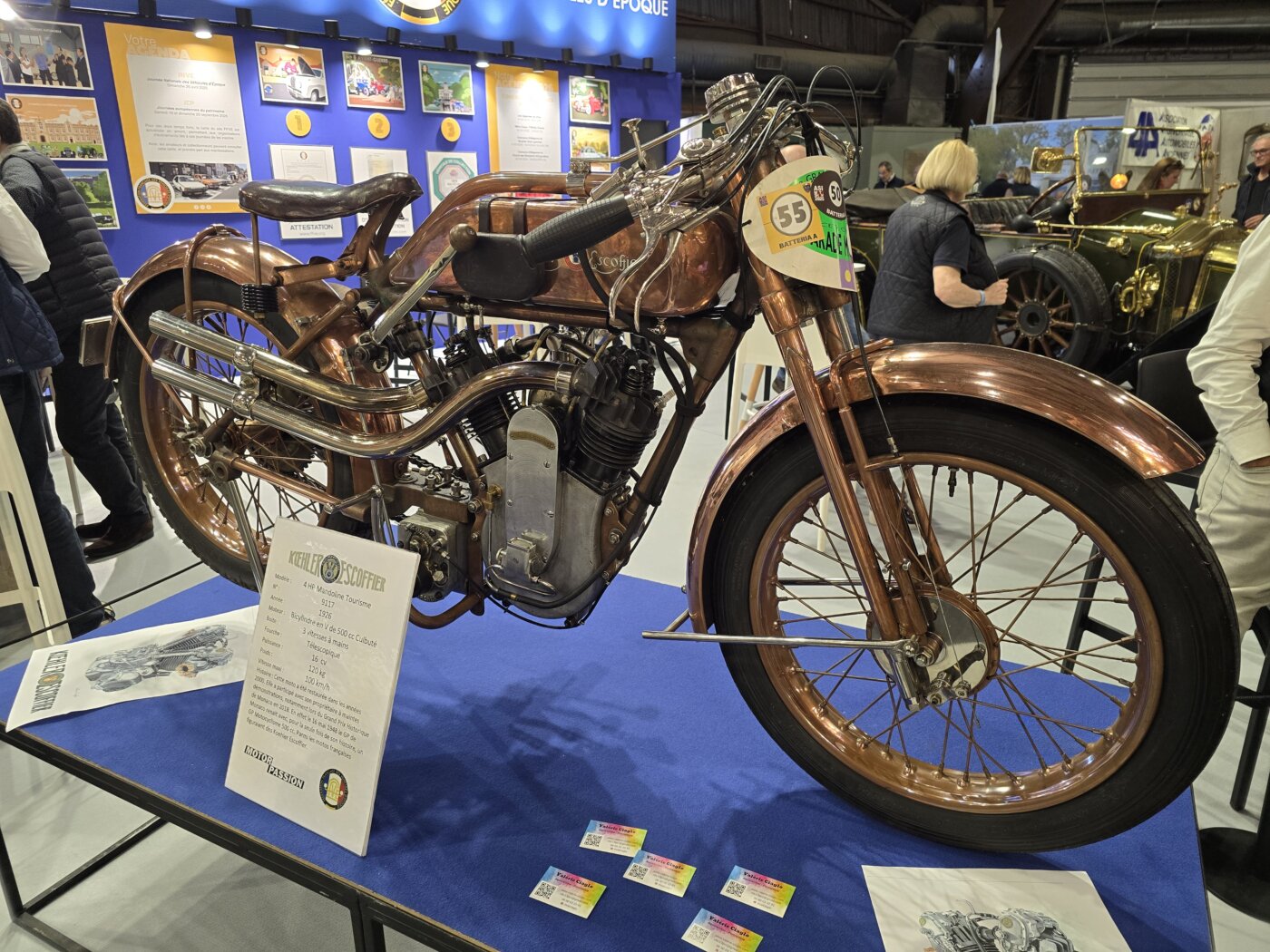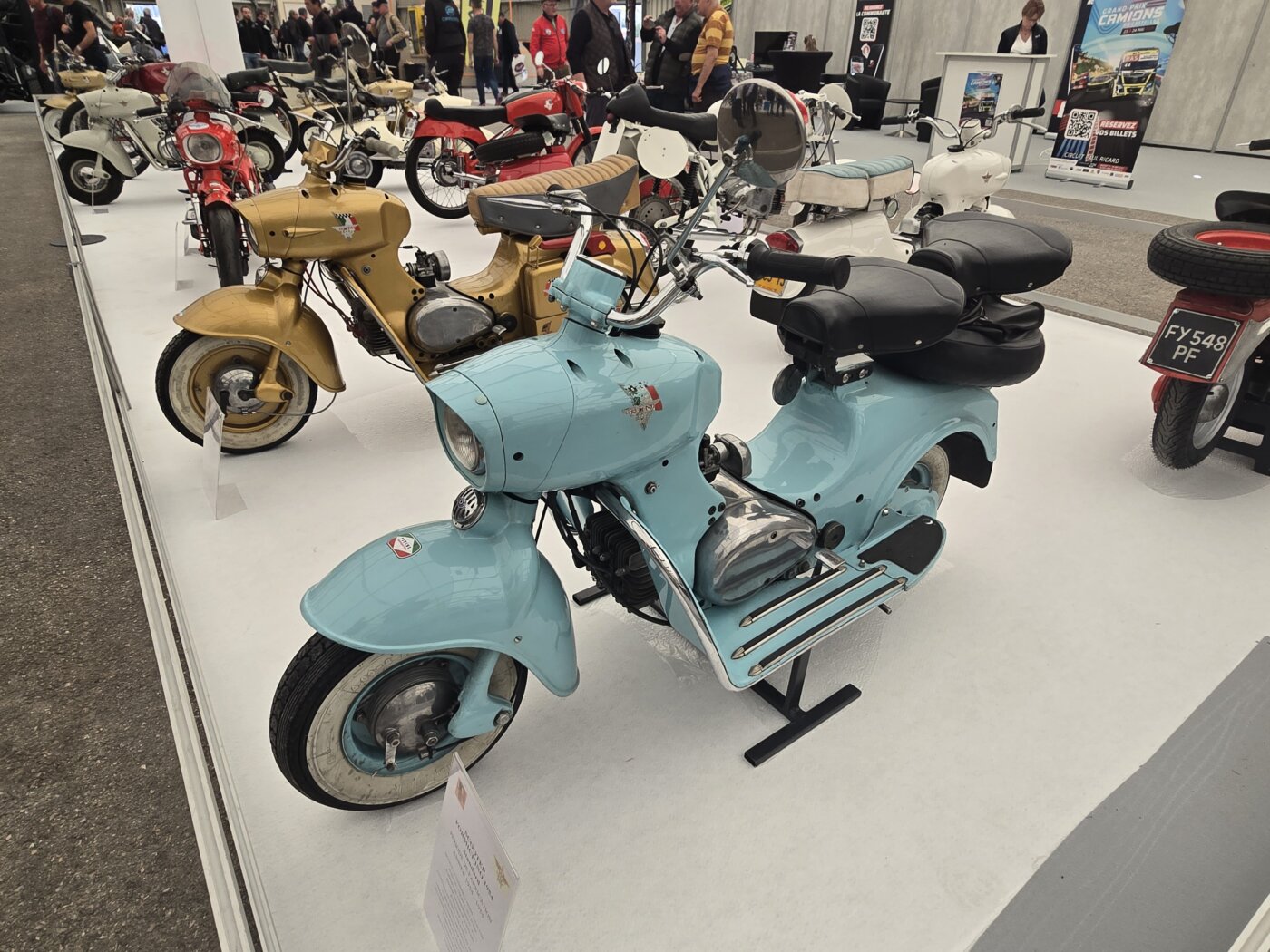 On y apprécie la diversité des visiteurs ; bandes de copains regroupés par centres d’intérêt, solitaires à la pupille resserrée fixant l’objet de leur convoitise sans donner corps à la moindre diversion, badeaux déambulant sagement, en famille le plus souvent et passionnés s’épanouissant à leur source, là où exposent leurs clubs.