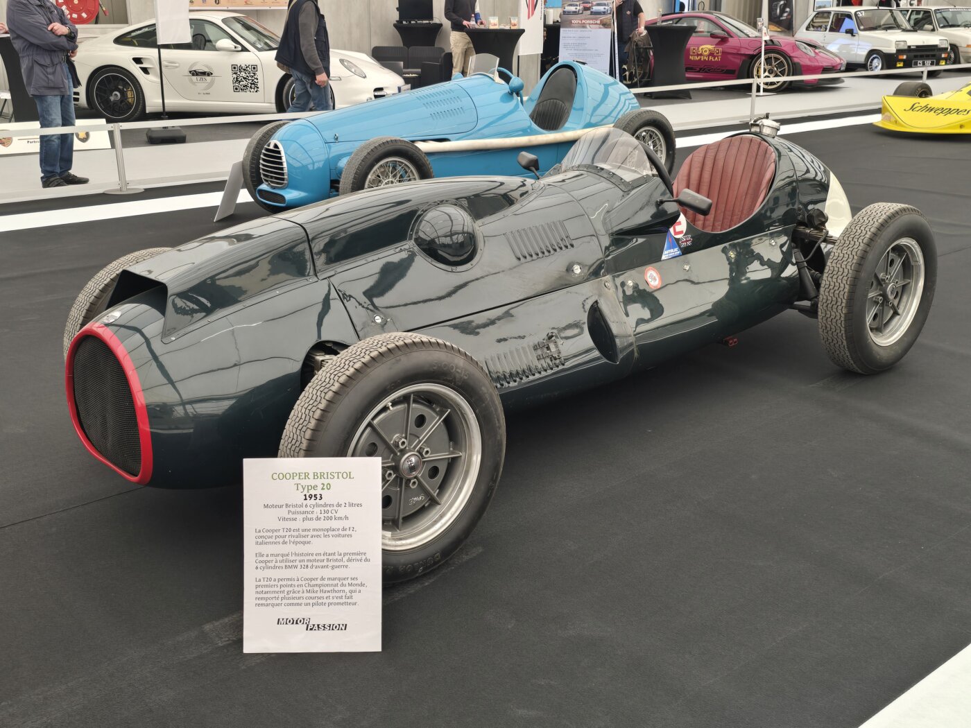 Ce modèle lancé en 1952 par John Cooper bénéficiait de l’évolution de la règlementation du championnat du monde de F1 qui venait d’adopter les règles prévalant initialement en F2. Les F1 de 1952 étaient donc des F2 et ce sera encore le cas en 1953. Equipée d’un moteur Bristol 6 cylindres de 2.0L issu de la BMW 328 d’avant-guerre qui développait 130 ch elle dépassait 200 km/h. Mike Hawthorn marqua à plusieurs reprises en F1 avec un modèle similaire. Réalisant même un podium en Grande Bretagne, assorti de deux 4e place, il se classa 5e du Championnat du monde 1952.