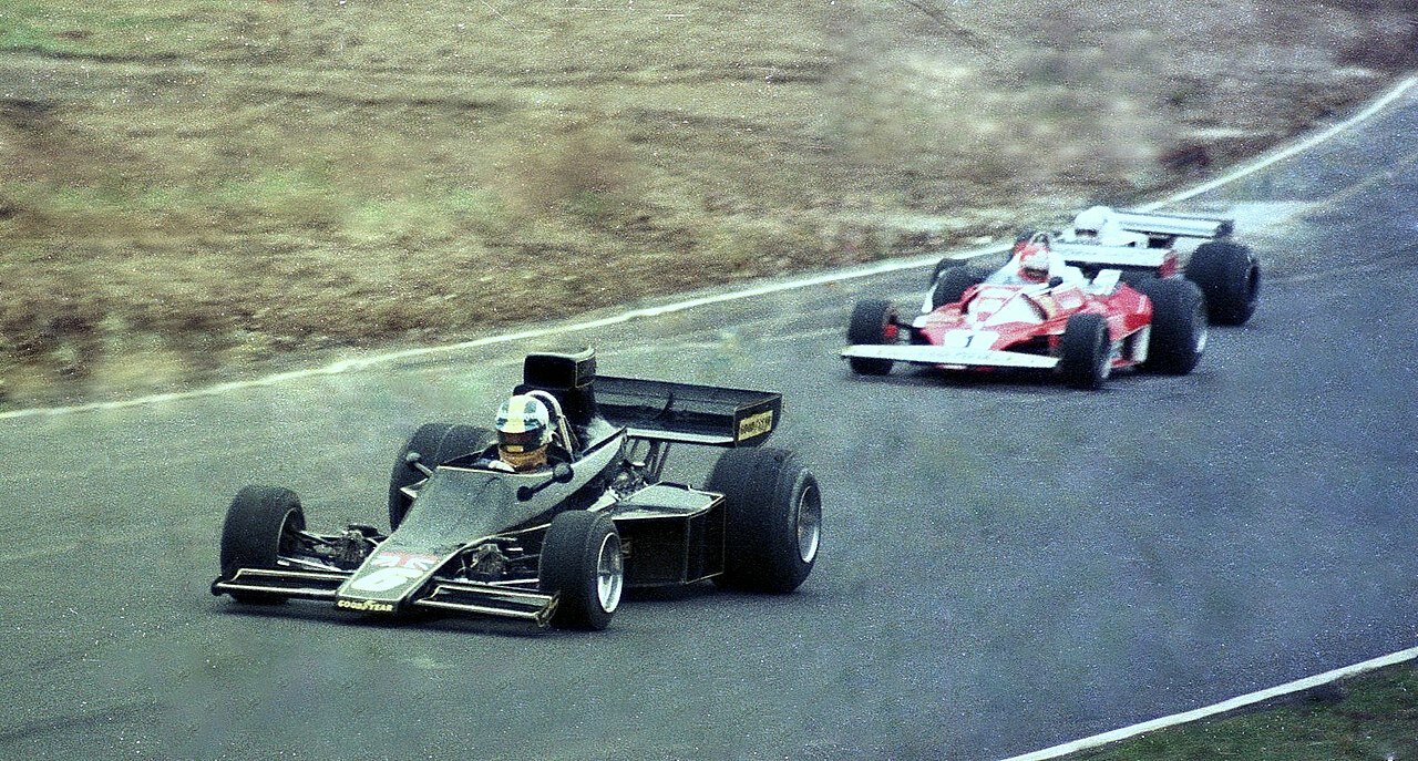 Gunnar Nilsson-Niki Lauda-Alan Jones-Surtees TS19 – Alan Jones – Brands hatch Race of Champions 1976 © Martin Lee, CC BY-SA 2.0 <https://creativecommons.org/licenses/by-sa/2.0>, via Wikimedia Commons