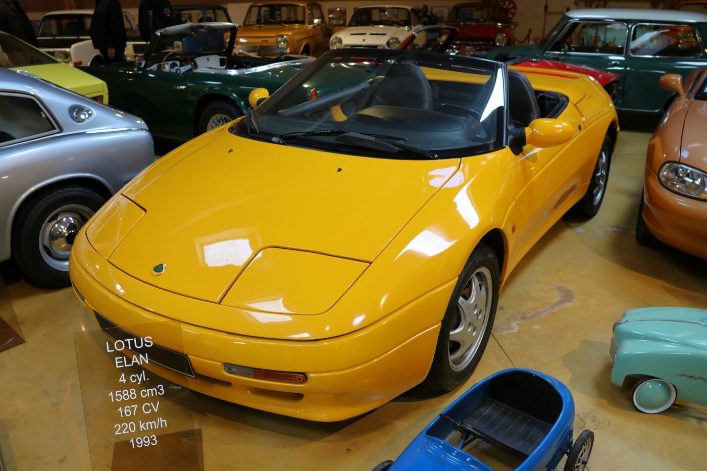 Au hasard des salles du Manoir de l’Automobile de Lohéac, nous passons devant une Lotus Elan 93, Gilles grommelle !
