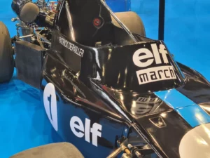 Une monoplace rare sur les salons que cette March 821 de John McDonald. Malgré une belle livrée, cette voiture ne fut pas une réussite : lourde et victime de pneus Avon absolument pas au niveau de ses concurrents Michelin ou Goodyear, elle ne ramena aucun point à l’écurie qui perdit son identité en fin de saison pour devenir RAM en 1983. Le seul fait de course notable de cette auto, si l’on osait, fut d’expédier vers l’au-delà le plus emblématique des pilotes du moment lors des essais du tragique Grand Prix de Belgique 1982. Triste !