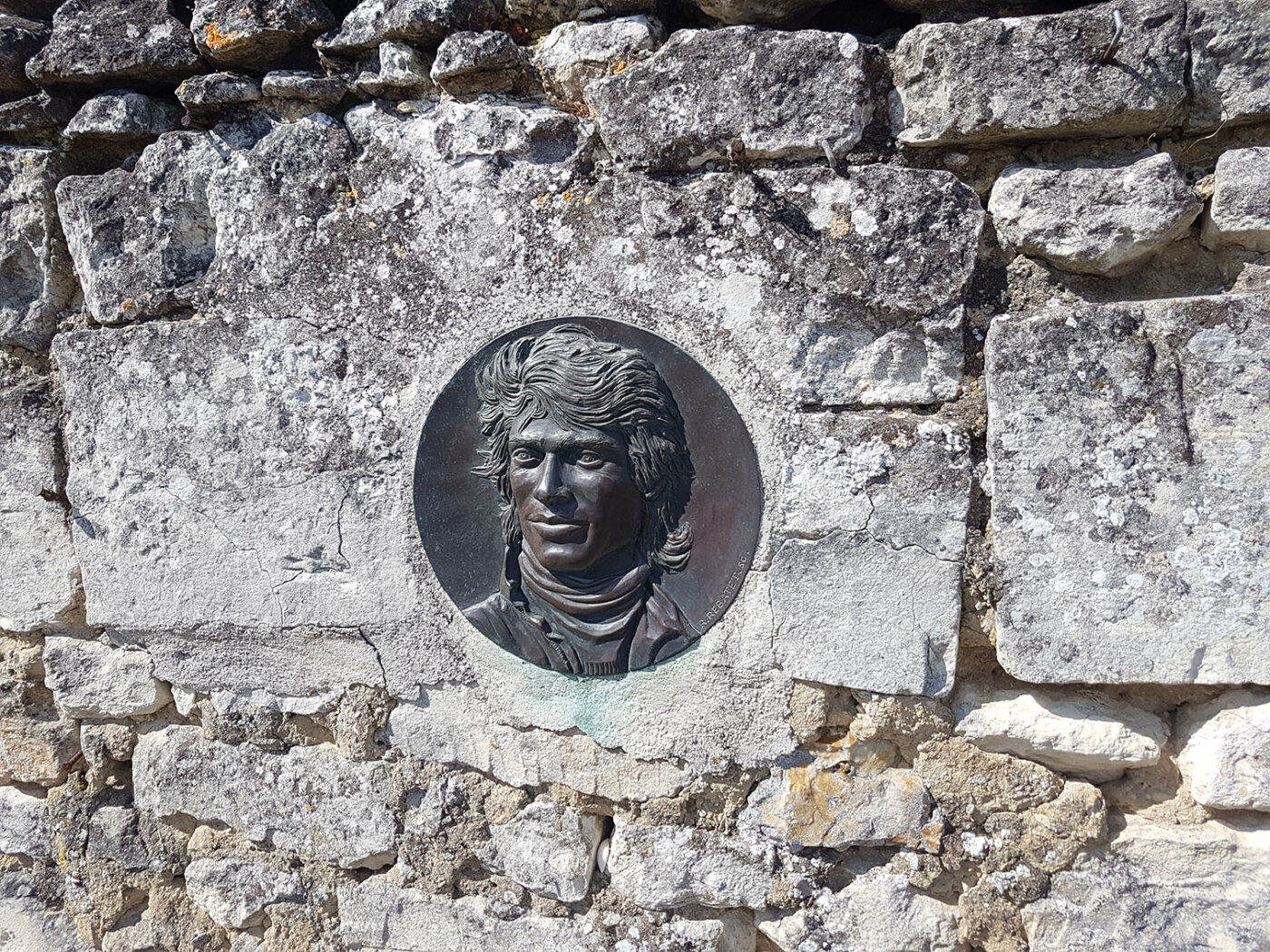 Je sais que ce que je cherche est adossé à un des murs d’enceinte. Je commence par celui du fond. L’inspection des sépultures n’ayant rien donné, je poursuis ma tournée pour finalement arriver sur le dernier parapet, celui du nord-ouest, où je remarque tout au bout un petit médaillon en bronze scellé dans les pierres. Je suis arrivé.