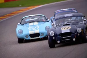 Je tenais beaucoup à filmer l’épreuve et pour obtenir l’accord de l’organisateur j’eus l’idée de lui offrir un plateau de très grands pilotes qui ne le laisserait pas insensible. Jugez plutôt : Stirling Moss et Jochen Neerpasch se partageant le volant du coupé Cobra Daytona et David Piper avec Steve Hitchins héritant du roadster Cobra, plus affuté, ayant été plus développé pour la compétition à l’époque par ATS.