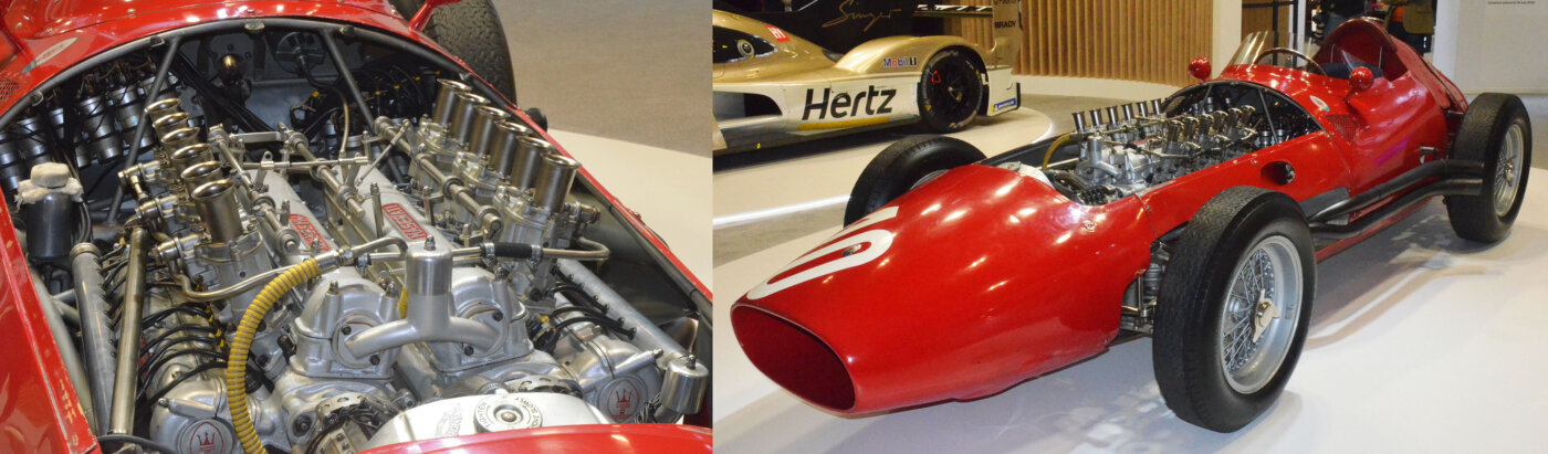 Encore un ratage somptueux ! La Maserati 250F six-cylindres en ligne était une des références des années cinquante : elle triomphait en 1957 aux mains de Fangio et constituait alors la voiture client incontournable. Cette même année 1957, les ingénieurs italiens voulurent plus de « noblesse » sous le capot et créèrent ce V12 2,5 litres légèrement plus puissant que le six en ligne. Mais plus lourd, et plus fragile, il détruisit le bel équilibre de la 250F. Fangio, qui testa la voiture à Monaco, ne fut guère convaincu et revint vite à son modèle de prédilection pour la course. Jean Behra conduisit la 250F V12 au Grand Prix d’Italie, avec un abandon à la clé, et la monoplace fut bouclée définitivement dans un atelier de Modène.