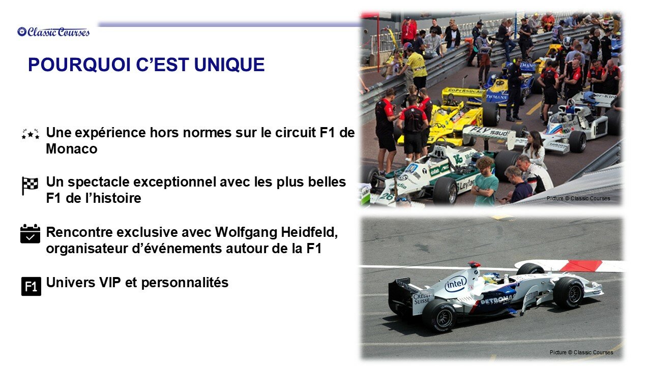 Monaco offre un cadre exceptionnel à la course automobile et notamment à la F1. Une occasion d’assister à des courses dont l’intensité vous surprendra. La qualité et la compétitivité des pilotes n’épargne rien à ces sculptures roulantes. Il est rare en un seul week-end de voir plus de 200 F1 rouler à la limite et encore plus rare dans ce cadre extraordinaire.