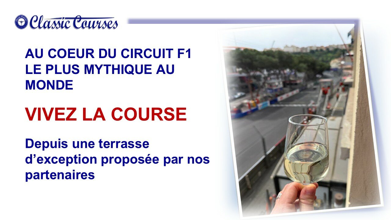Nous vous proposons d’assister au Grand Prix de Monaco Historique 2026 depuis une terrasse située sur la ligne de départ, face à la sortie des stands.